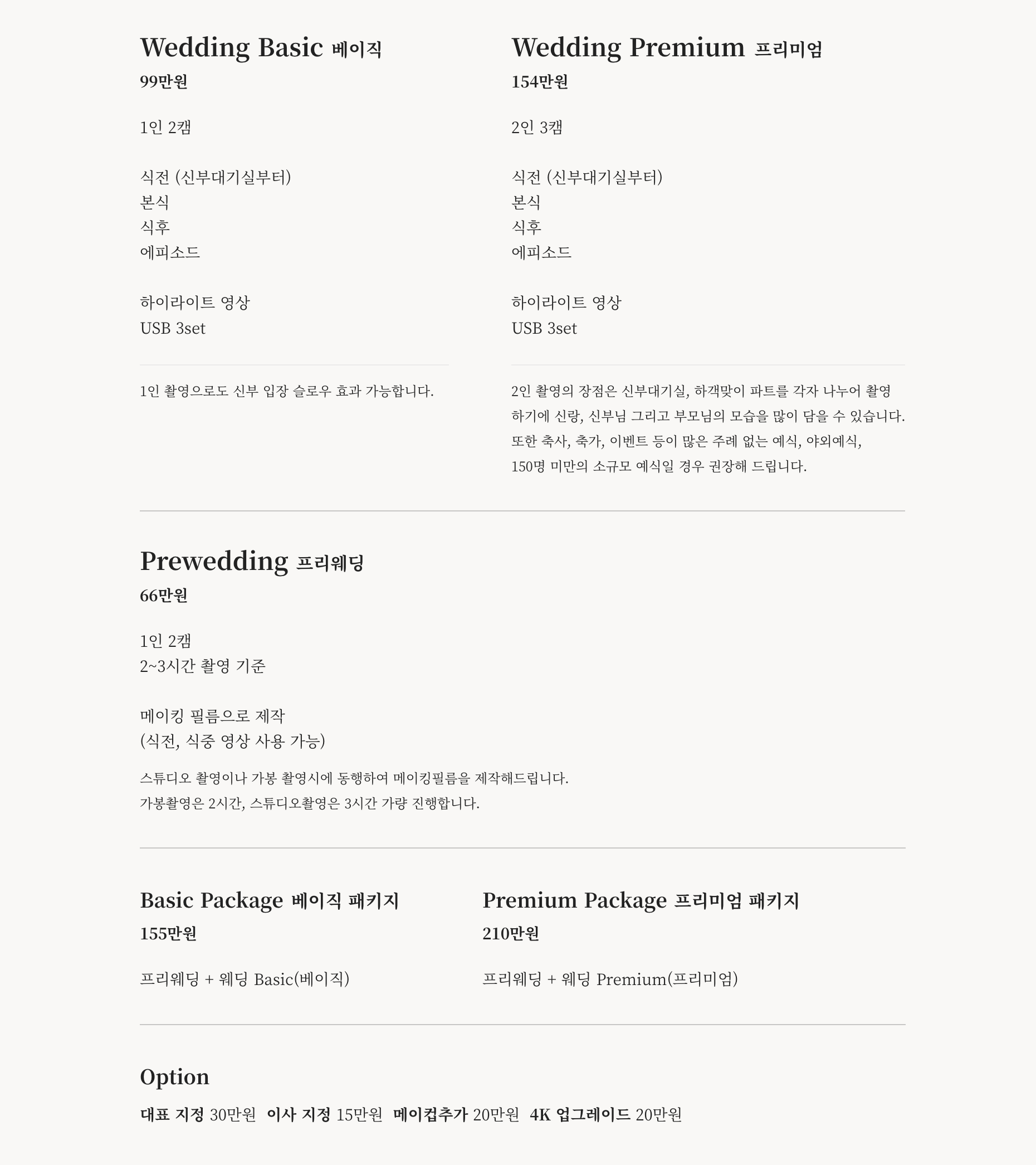 * 본식 상품에는 하이라이트 영상은 서비스로 제공됩니다.